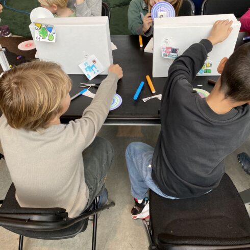 The children make rotoreliefsKinetic insects make their own art“Tinguely boxes” made by the children